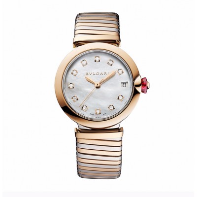BVLGARI/宝格丽 LVCEA 系列 女士玫瑰金色18K金表带白色珍珠母贝钻石装饰表盘机械表腕表女表 102954