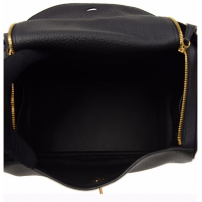 【包邮包税】Hermès 爱马仕 LINDY 30 女士黑色牛皮金扣单肩包