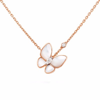 【包邮包税】Van Cleef & Arpels/梵克雅宝 经典款Deux Papillons 女士白色珍珠贝母两只蝴蝶项链 VCARO8FO00